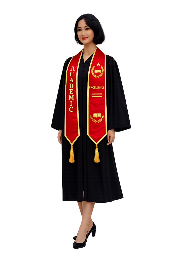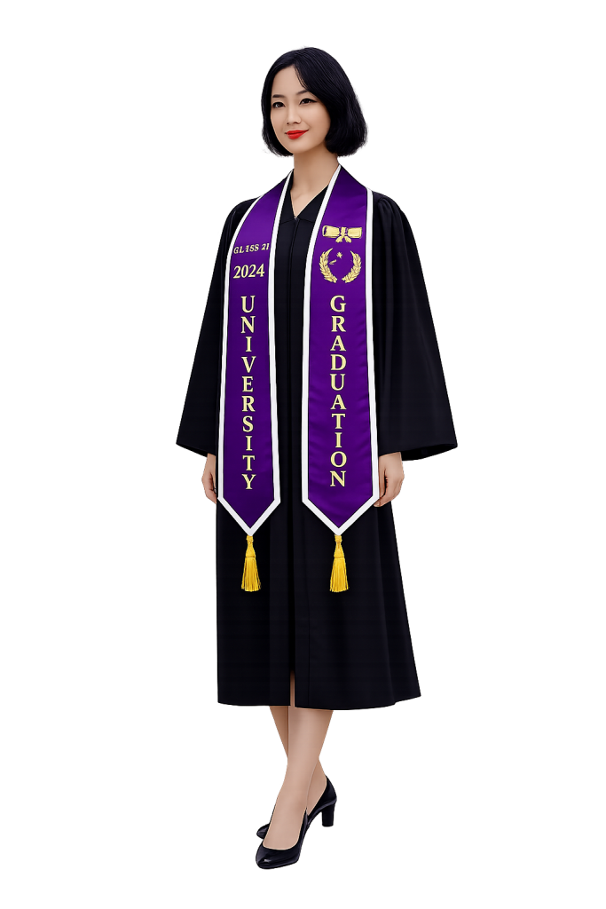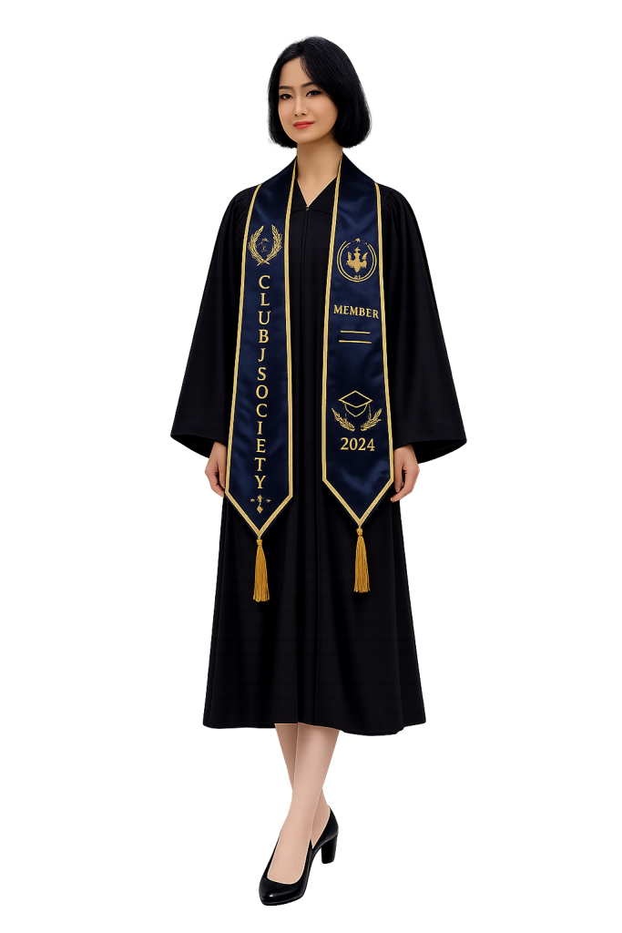 Fully customized graduation sashes tailored to your institution’s branding and academic standards. Choose fabric, trim, embroidery, and size specifications for a cohesive graduation ensemble.